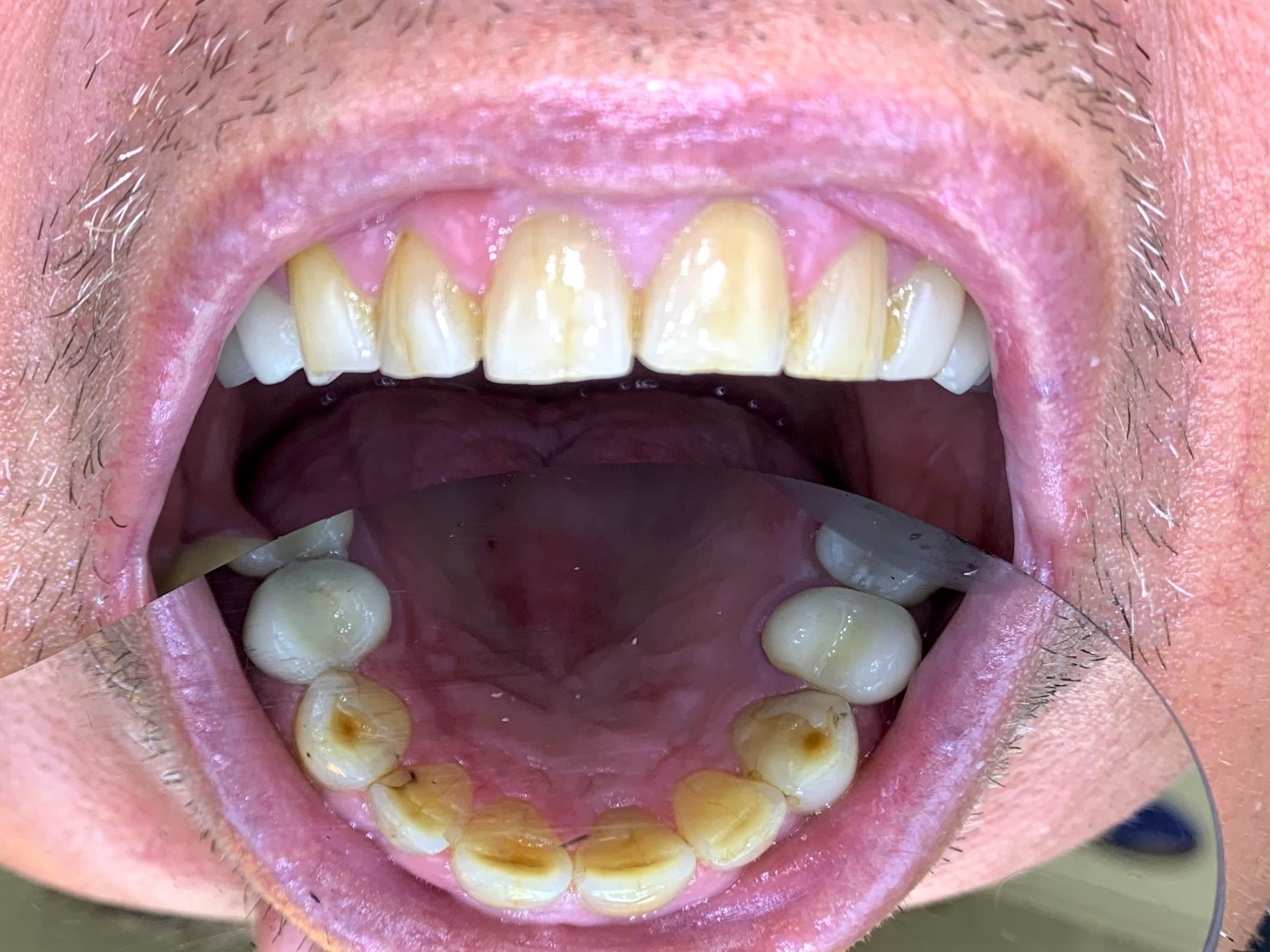 Betennelse i tannkjøttet, gingivitt, trenger behandling. Det gis grundig opplæring i hvordan renholde tennene, og tannlegen utfører profesjonell rengjøring.